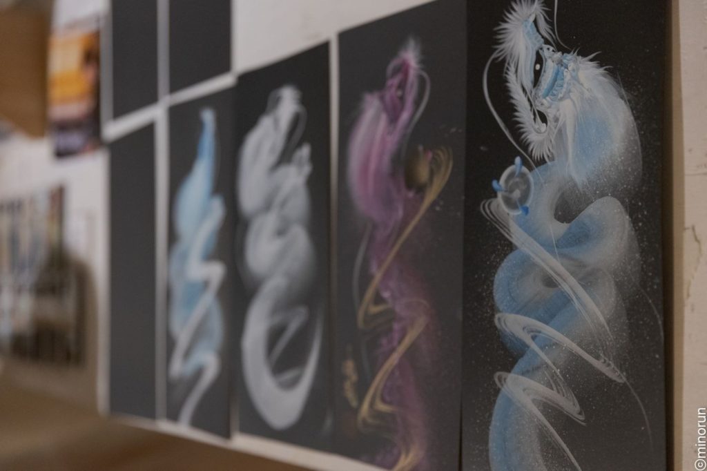 そこで2年半ほど前に思い切ってデザインの仕事を全部辞めて、アーティストとして活動する決心をしました。その覚悟が決まって、これからなにかひとつ自分の作風を決めようと考えていたタイミングで、ふと駅の構内のポスターに描かれていた龍に目が留まったんです。
