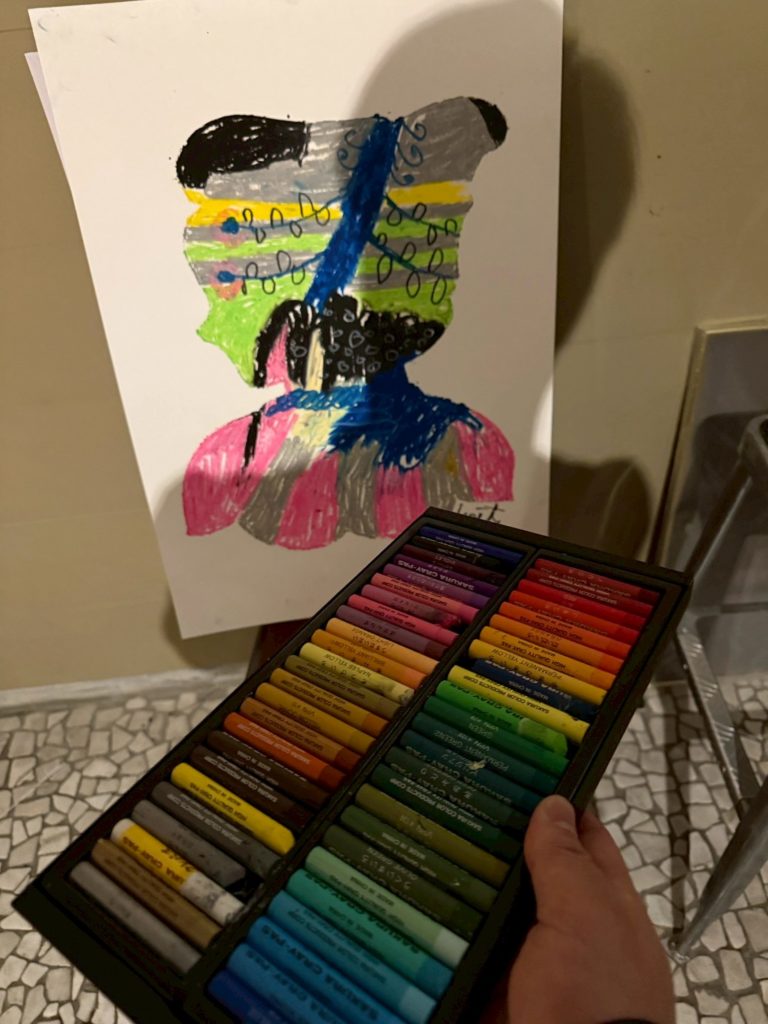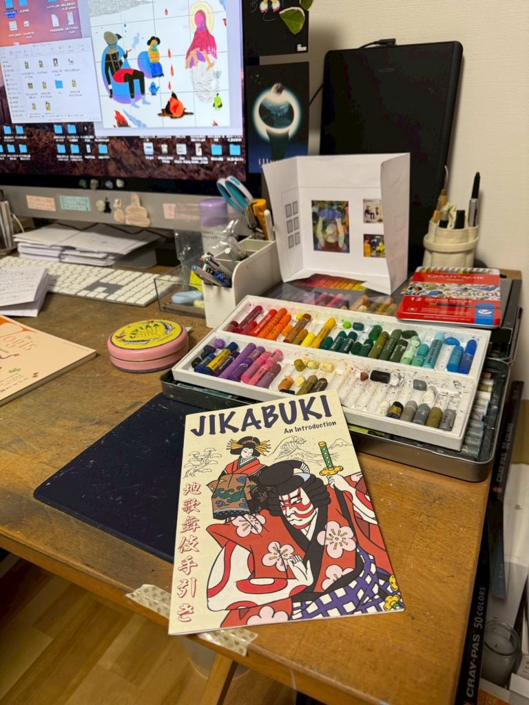 タイトル「クレヨン プレイオン(クレヨンで遊び続ける)」が示す通り、20歳から24年間クレヨンを愛用しつづけた現在地、そして新しい展開としてクレヨンの延長線上としての油彩画もあわせてご高覧ください。
