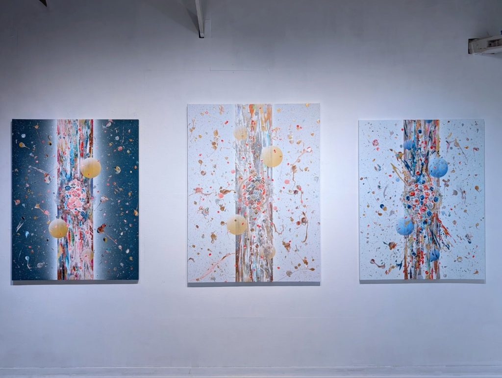 日々の中で積み重なる時間や記憶を捉え、画面の構造とストロークを重ねながら、その中からかたちが立ち上がってくる作品を制作している。