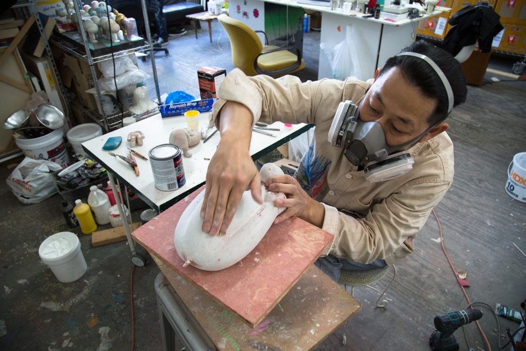 というのも元々立体作品は日本のお地蔵さんからヒントを得てNYのストリートに置くことからはじまったので、丸っこいフォルムなんです。